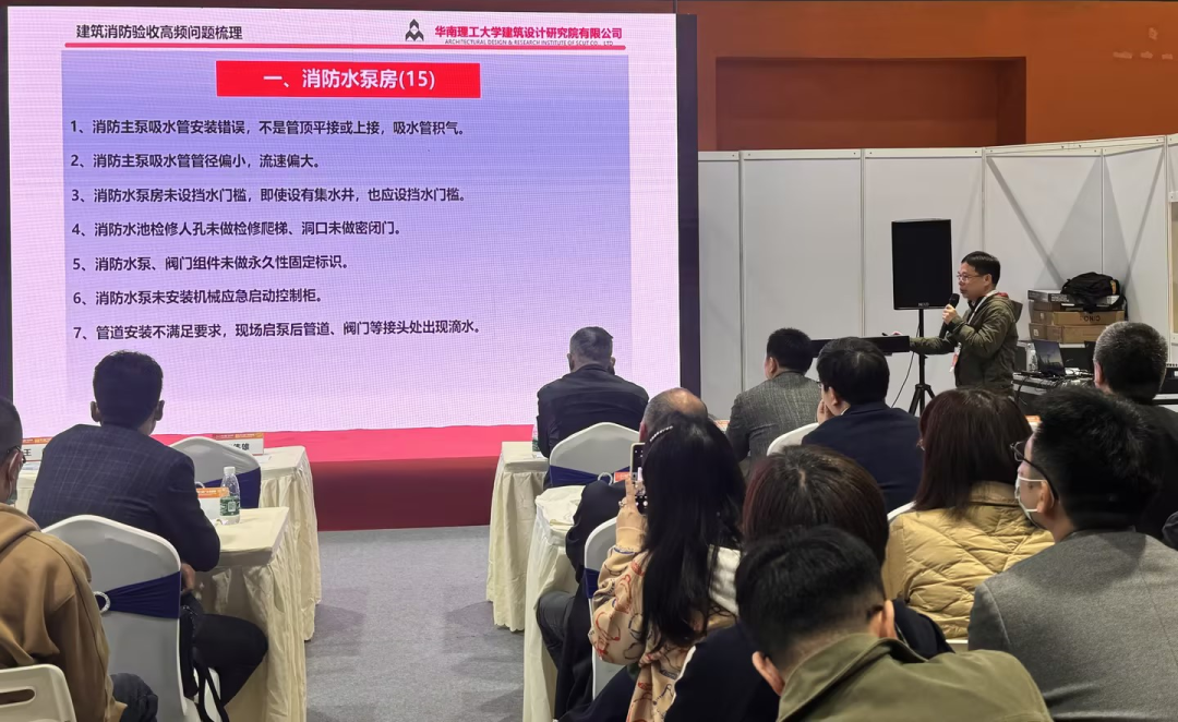 華南理工大學建筑設計研究院有限公司建筑設計三院給排水副總工,注冊公用設備師,正高級工程師岑洪金先生做了《建筑消防驗收高頻問題梳理》主題報告;