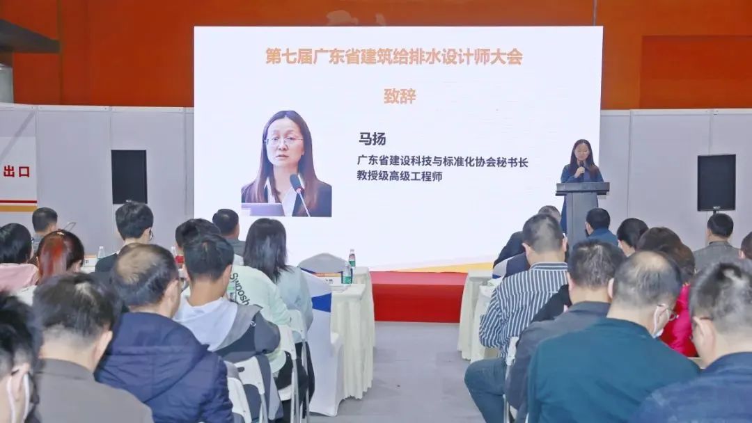 廣東省建設科技與標準化協會秘書長馬揚女士致開幕辭。她指出,“雙碳”目標下,建筑業迫切需要走上綠色低碳轉型的高質量發展道路,建筑給排水也需順應發展趨勢,踏上“綠色、循環、低碳”的發展之路。